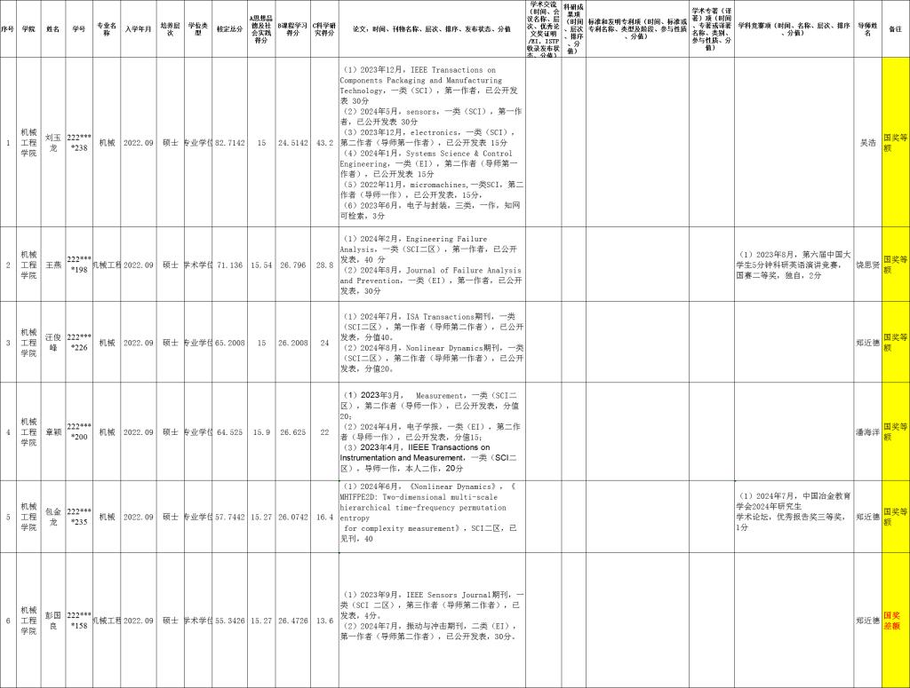 2024年研究生国家奖学金拟推荐人选,具体推荐人名单和情况公示如下: