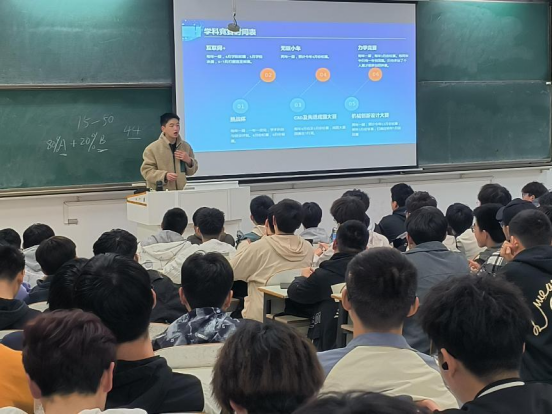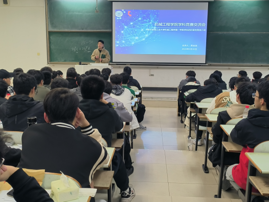 于佳山校区教三南305教室组织了一场学科竞赛交流会,会议由院团委书记费白露主持,邀请学院在多项学科竞赛中获奖的创新创业典型吴金龙主讲。