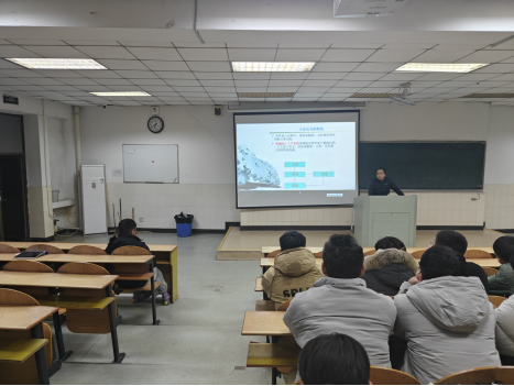 在秀山校区阶教103教室召开了机械设计制造及其自动化专业分方向介绍会。会议由机自专业系主任高文斌主持,辅导员费白露及该专业2021级全体学生参加会议。