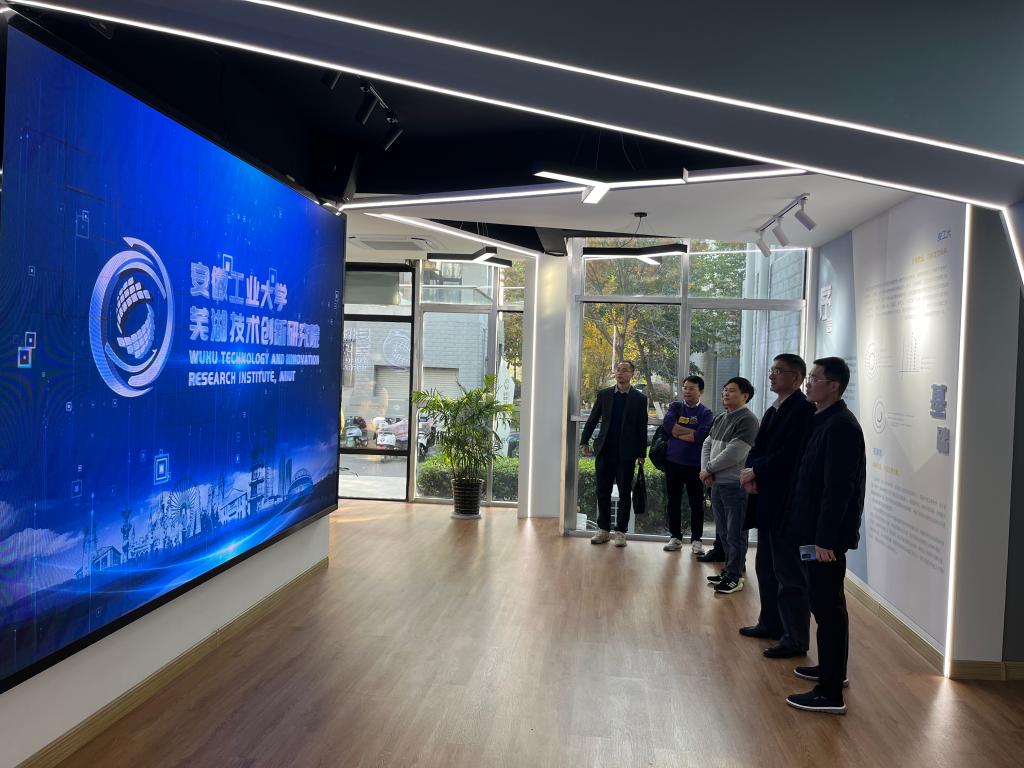 首先,刘庆运一行赴安徽工业大学芜湖技术创新研究院开展调研,创新研究院负责人介绍了研究院的整体建设发展情况、2023年工作目标完成情况以及成果转化过程中遇到的痛点问题。刘庆运对研究院取得的优异成绩表示祝贺,他指出,学校高度重视产学研合作,研究院可以充分借助学校的平台和资源,找准发展方向,增强自身的造血能力,实现做大做强。同时,刘庆运建议,研究院可以结合芜湖市产业结构,充分发挥学校的科研、人才、学科优势,寻求校企之间的深度合作,推进科研成果在芜湖落地、转化,为芜湖市地方经济的发展贡献工大力量。