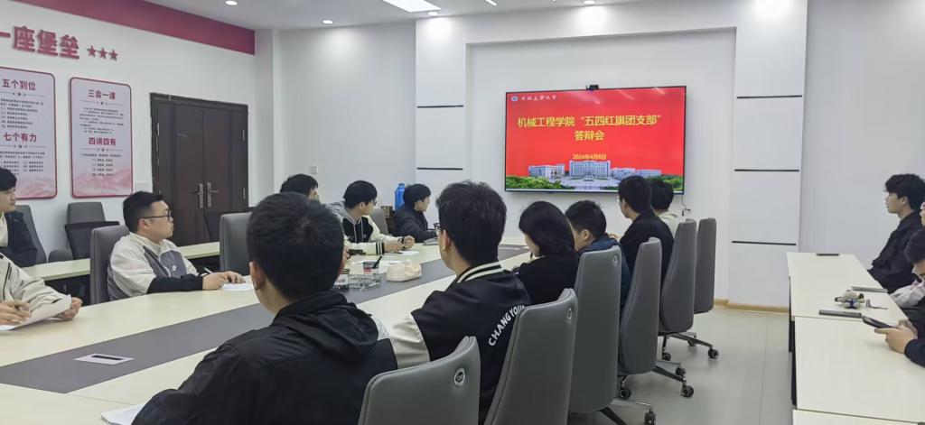 在机械楼302会议室举行“五四红旗团支部”评比答辩会。学院团委负责人、辅导员老师、候选班级团支书和学生代表参加答辩会。
