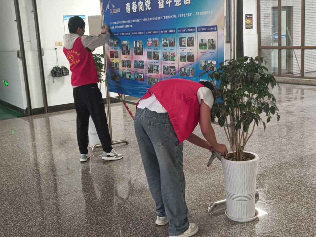 学生党支部联合开展以“践行劳动教育,弘扬劳动精神”为主题的机械楼清扫实践活动。