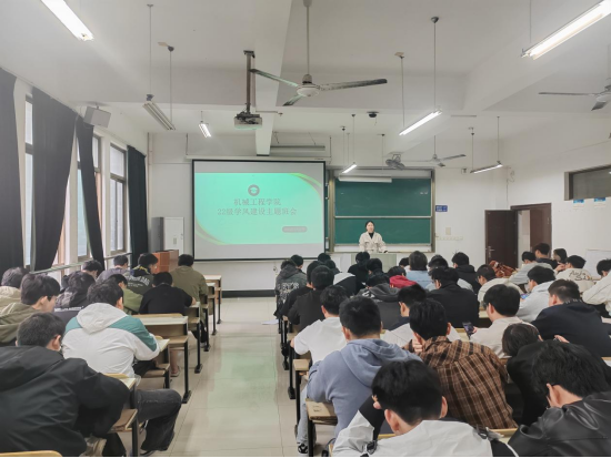 2022级在机械楼403教室召开学风建设动员大会。会议由22级辅导员濮莹萍、孙紫玮主持。
