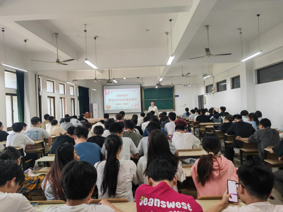 2022级在机械楼举办了树立大学生正确恋爱观念讲座,此次讲座由22级辅导员濮莹萍、孙紫玮主持,22级全体学生参加。