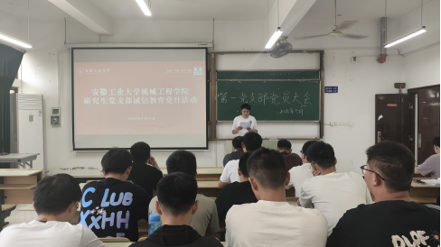 研究生党支部在机械楼405组织开展诚信主题教育,支部党员参与学习。