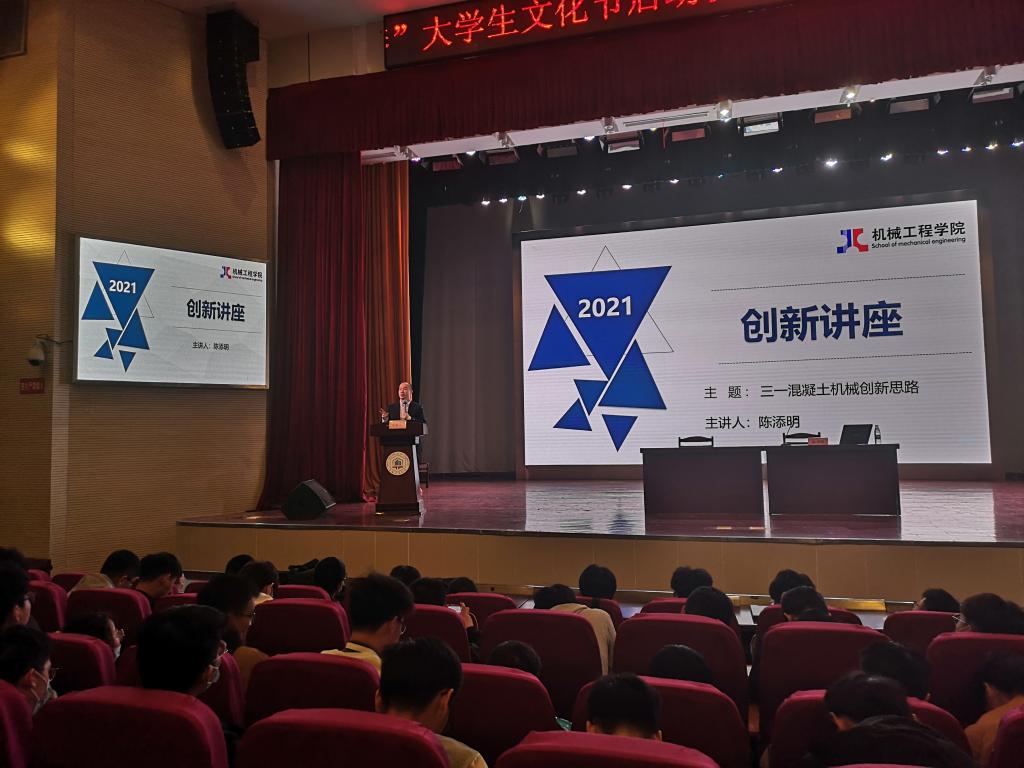 2002届优秀校友三一重工股份有限公司泵送公司副总经理、泵送研究院院长陈添明为学院本科生、研究生作了题为“三一混凝土机械创新思路”的报告会。报告会在秀山校区大学生活动中心开展,由学院党委副书记、副院长李克明主持,学院全体辅导员、各年级本科生代表、研究生代表参加了报告会。
