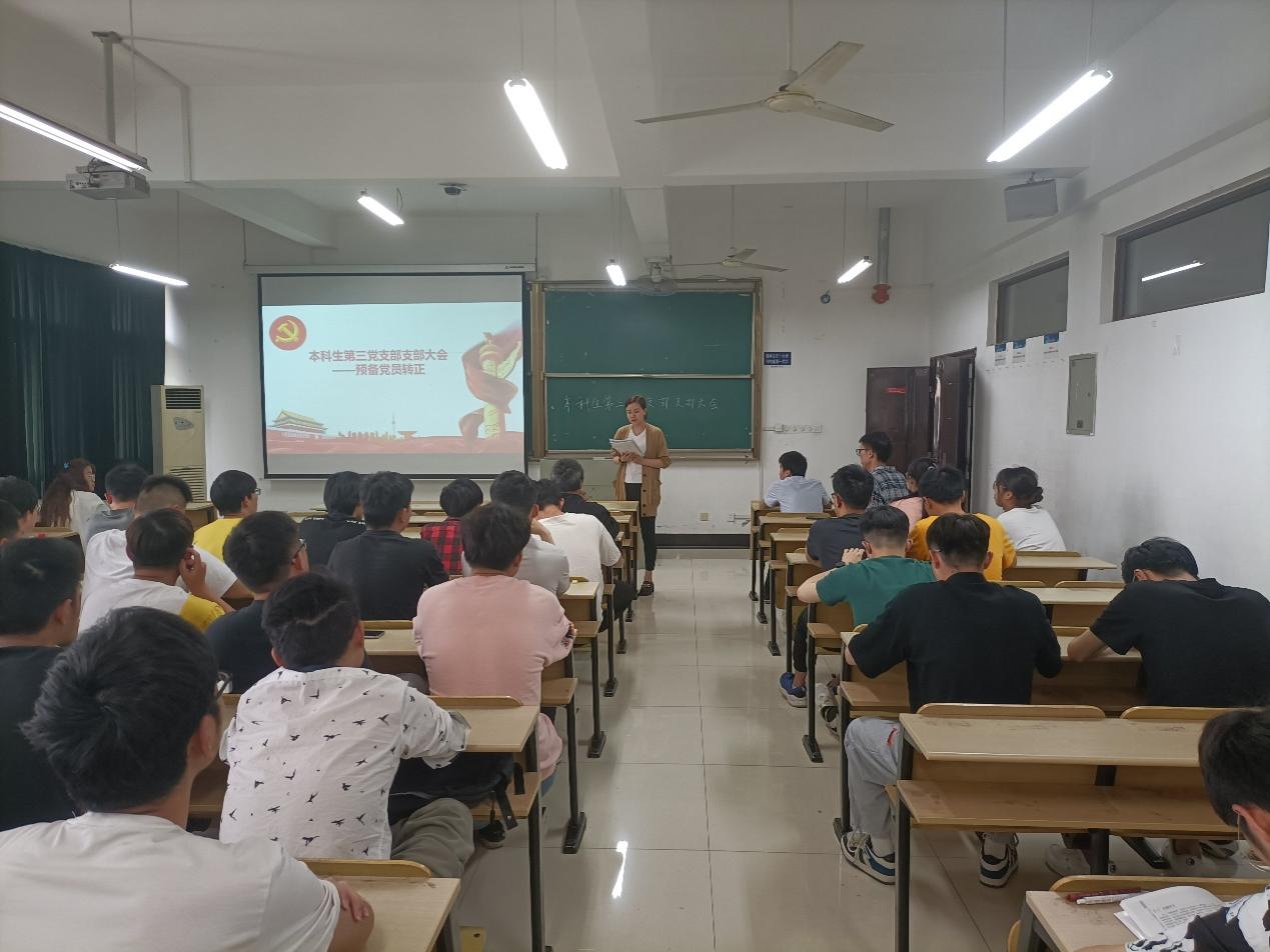 本科生第三党支部在机械楼405召开支部党员大会。支部党员共74人,实到72人,其中正式党员21人,实到20人。会议由支部书记王琴主持。