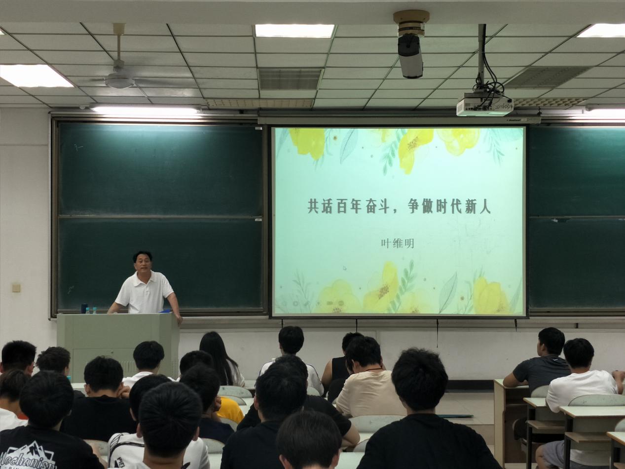 叶老师从历史的角度出发,重点讲述了党的百年奋斗历程,他结合自身的实际情况向学生分享了自己的学习工作经历、人生感悟等。他表示,青年大学生要赓续党的红色血脉、弘扬党的优良传统,坚定信仰,多历练长才干,积极向党组织靠拢。其次,他教育引导广大学生做习近平新时代中国特色社会主义思想的坚定信仰者,忠诚实践者;青年大学生要努力学习科学文化知识,刻苦钻研,多向榜样学习。最后,叶老师希望同学们坚定信念、增强底气;加强学习、练就本领;提升素养、明辨是非,牢记习近平总书记的殷殷嘱托,为扛起新使命、谱写新篇章注入磅礴青春力量。