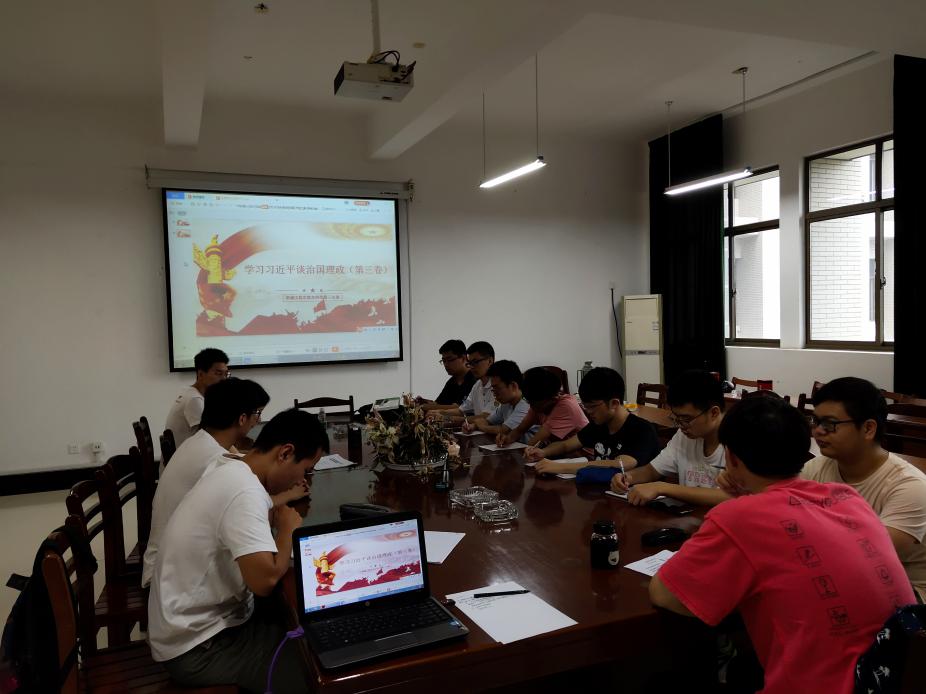 本科生第三党支部在机械楼302组织学习《习近平谈治国理政》第三卷,支部全体成员出席会议。