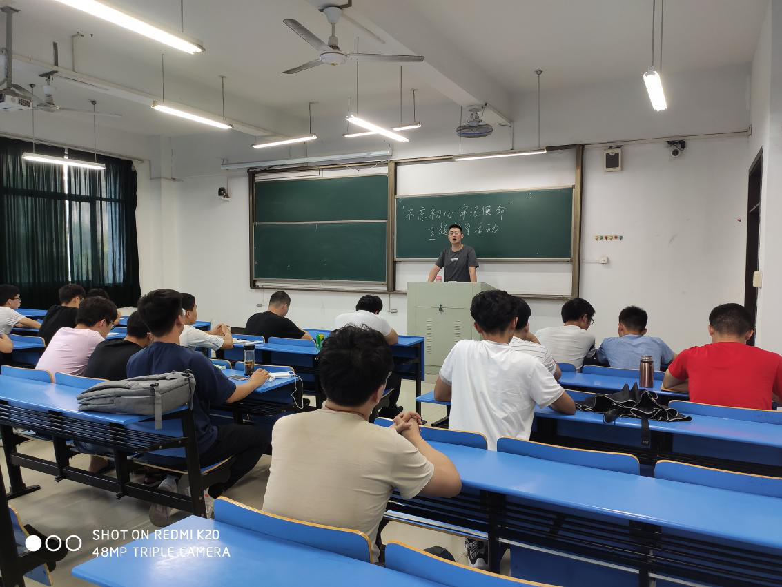 接着,章军有请2019年安徽工业大学推普脱贫攻坚三下乡党员代表队的队长陈远赫介绍了此次参加安徽省六安市金寨县包畈村的志愿服务活动情况,包畈村人文历史厚重,红色底蕴丰厚,有开国大校江波,原四野副师长彭传富,优秀学子张绪发,付四海,方太升,方林、吴辉、知名企业家徐立等一大批成功人士。包畈村在坚持党建引领的前提下一贯致力于村内自然的优势,坚持以脱贫攻坚为主线,以绿水青山为依托,乡村振兴为目标,美丽乡村为亮点,人居环境为突破,自然生态为标准,成功摘取了“贫困村”的帽子。此次活动,也让学生党员更深刻地理解了中国共产党员的初心和使命,为中国人民谋幸福,为中华民族谋复兴。