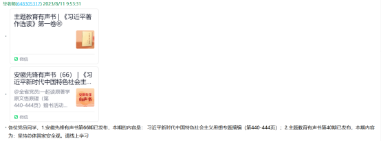 二是原原本本学。支部暑期开展主题教育,将党的章程和党的创新理论著作作为重要的学习文本。支部书记带头深入研读《习近平著作选读》、《习近平新时代中国特色社会主义思想专题摘编》,充分利用“安徽先锋”党员教育平台、“安徽先锋微讯”微信公众号和校主题教育专题网等线上平台开展自主学习。通过原原本本学,深刻领悟中国共产党为什么能,中国特色社会主义为什么好,归根到底是因为马克思主义行。引导党员牢牢把握贯穿其中的立场观点方法以及蕴含的规律性认识。