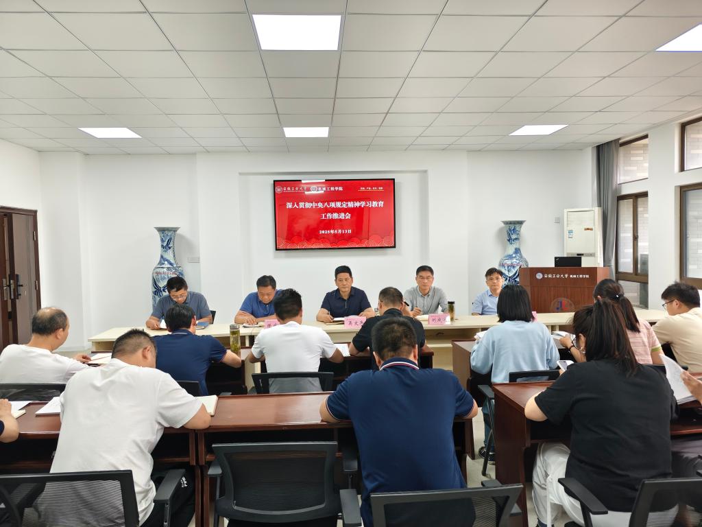 为持续深化党的作风建设,推动中央八项规定精神入脑入心、见行见效,5月13日下午,NT动漫 在机械楼404会议室召开深入贯彻中央八项规定精神学习教育工作推进会。院领导班子成员、党委委员、党支部书记参加会议,会议由院党委副书记、纪委书记、副院长陈庆林主持。