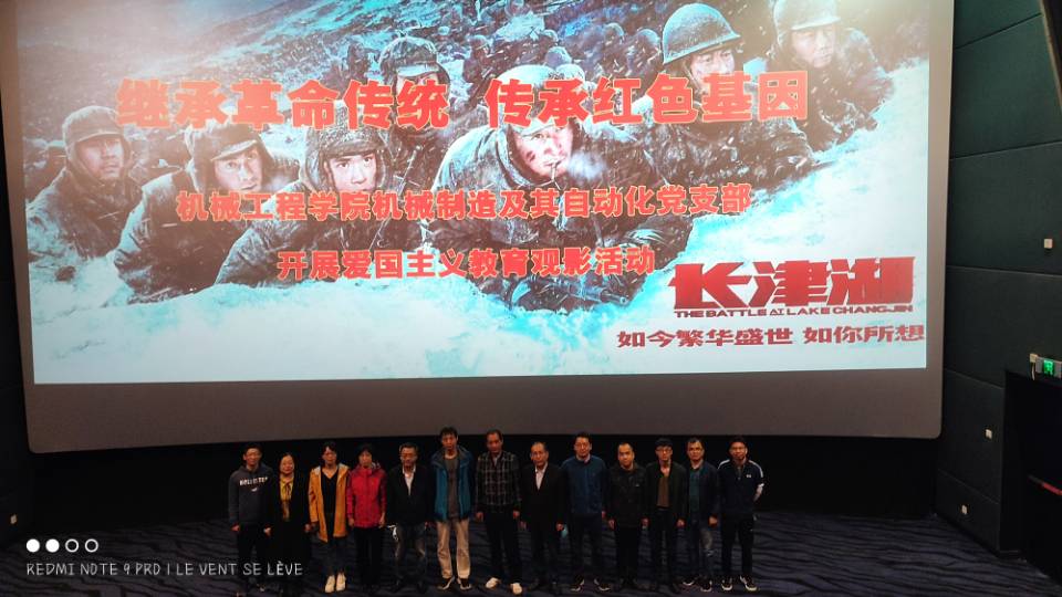 机械制造及其自动化党支部举办“观看爱国电影,传承红色基因”主题观影活动,组织支部党员集体观看红色电影《长津湖》。
