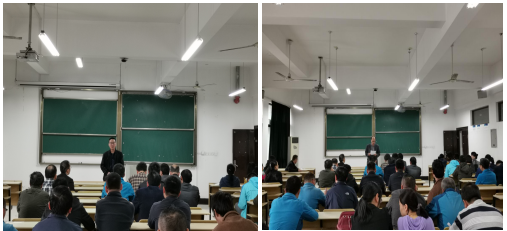 党委书记徐柳根、副书记、院长王孝义在机械楼405教室分别做了主题教育党课报告,学校主题教育第三督导组成员、学院全体党员教师聆听了党课。