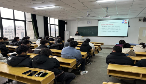 在佳山校区第一教学楼分专业分批次开展新学期学生安全教育大会,会议由学院2023级辅导员张敏、彭勇刚主讲,全体2023级学生参加。