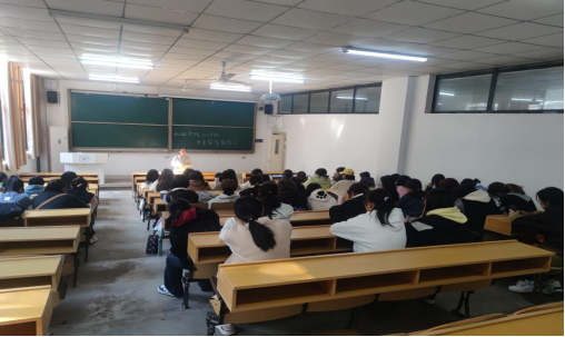 在教一107召开2023级女生安全教育会,学院2023级全体女生参加会议。