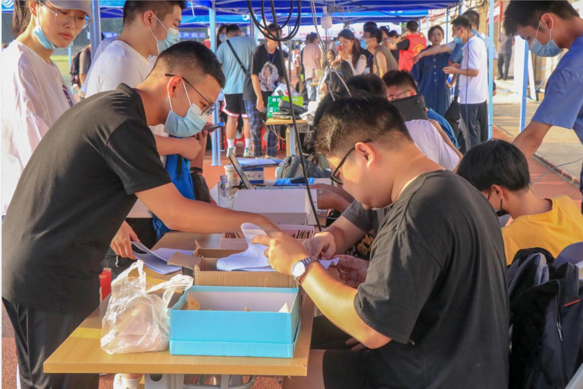 早上6点30分,学院迎新志愿者在田径场已准备就绪,等待着新生们的到来。扫码登记、核验身份、校园卡发放、引导讲解、维持秩序等各项报到流程都无缝衔接,快速高效,现场秩序井然。学院领导、2021级辅导员始终在现场坚守岗位,密切关注迎新现场秩序。