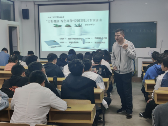 于佳山校区教一302召开了学院2020级“文明健康 绿色环保” 爱国卫生月专项活动总结分析会,会议由2020级辅导员汪辉主持,2020级各班生活委员及寝室长参加了此次会议。