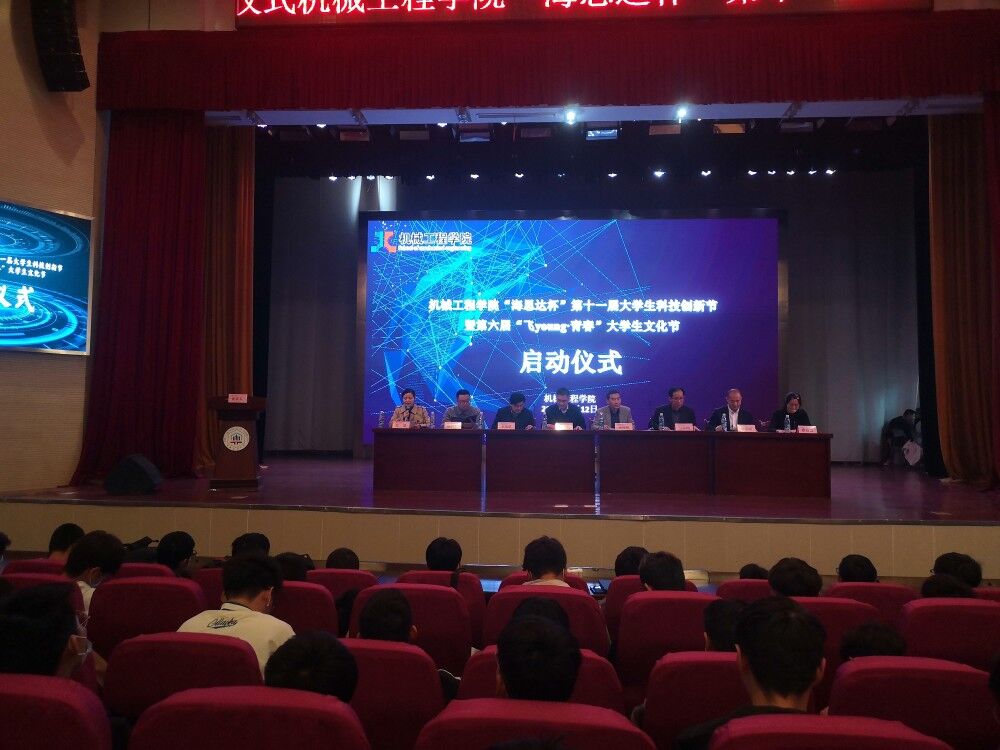 在秀山校区大学生活动中心举办了“海思达杯”第十一届大学生科技创新节暨第六届“飞young·青春”大学生文化节开幕式,学院领导徐柳根、刘庆运、李克明、汪永明、“海思达”机器人有限公司董事长张良安、三一重工股份有限公司泵送公司副总经理、泵送研究院院长陈添明出席了开幕式,学院全体辅导员、各年级本科生代表、研究生代表参加了大会,大会由王琴主持。