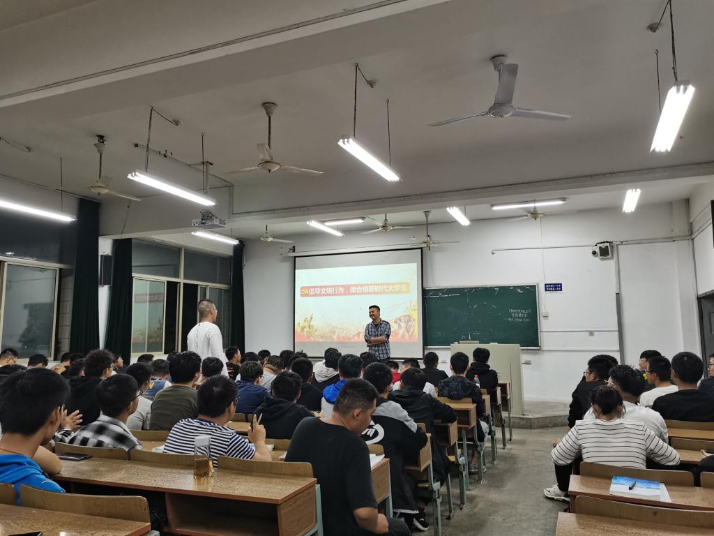 于佳山校区教二207教室开展了“倡导文明行为,做合格新时代大学生”大讨论。会议由2020级辅导员汪辉主持,2020级新生参加了此次会议。