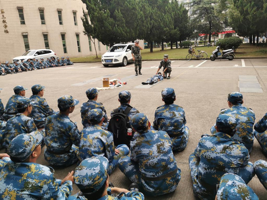 9月23日下午,NT动漫 2020级新生佳山校区第三教学楼开展了卫生健康教育和战场医疗救护训练,此次教学活动由校医院工作人员和军训教官担任主讲。
