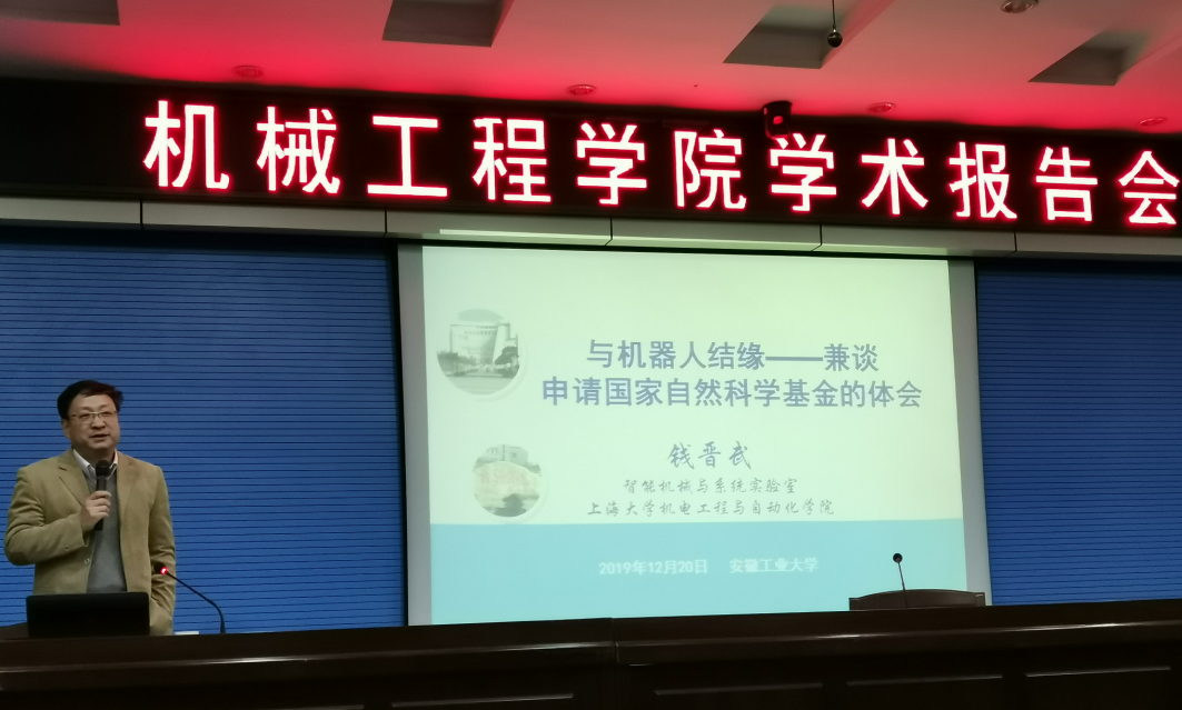 为广大师生做了题为《与机器人结缘——兼谈申请国家自然科学基金的体会》的学术报告,报告由刘庆运主持。