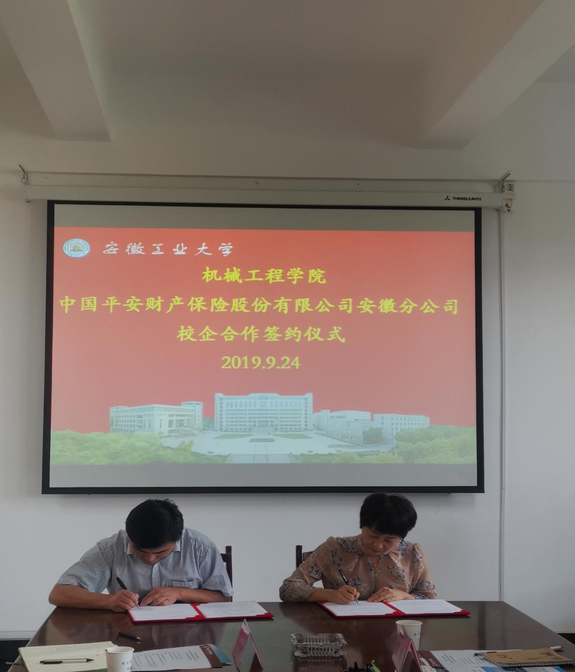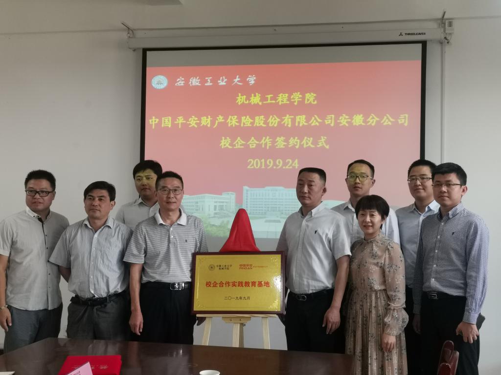 与中国平安财险股份有限公司安徽分公司“校企合作”签约仪式在机械楼302会议室举行。中国平安财险股份有限公司马鞍山中心支公司总经理陈青、中国平安财产保险股份有限公司安徽分公司人力资源部经理孔凡荣、安徽分公司车意理赔部经理吴刚、安徽分公司车意理赔部车物管理团队经理朱佳、安徽分公司人力资源部发展规划室经理方业成、马鞍山中心支公司理赔部经理张永鹏、NT动漫