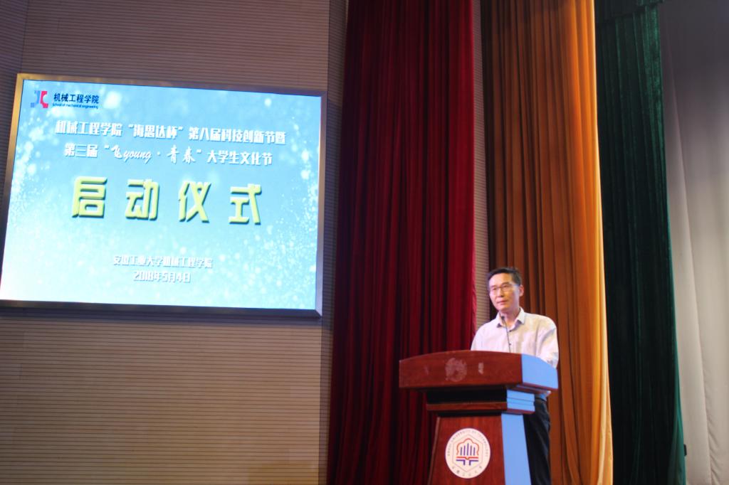 “海思达杯”第八届大学生科技创新节暨第三届“飞young·青春“大学生文化节启动仪式在秀山校区新大学生活动中心正式举办。本次活动由院党委副书记、副院长李克明负责主持,出席活动的嘉宾有院党委书记徐柳根,院长王孝义,海思达机器人有限公司总经理李友顺,副院长汪永明、副院长刘庆运。