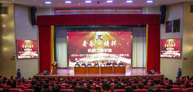 2016—2017学年学生先进集体、先进个人表彰大会暨“海思达杯”第七届科技创新节闭幕式在秀山校区大学生活动中心举行。校长魏先文莅临大会并发表了热情洋溢的讲话,学工部部长姚敏,安徽海思达机器人有限公司董事长张良安,学院领导徐柳根、王孝义、李克明、汪永明、刘庆运,学院各党支部书记、系(室)主任,全体辅导员,获奖学生代表以及各年级学生代表500余人参加了大会。大会由李克明主持。