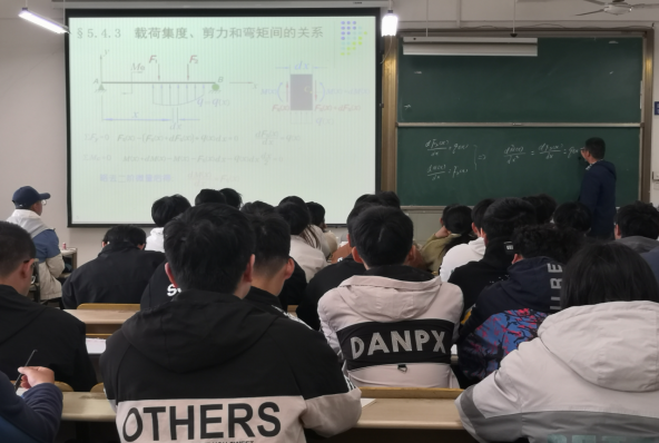 省级课程思政示范项目课程组成员胡晓磊老师进行率先示范,讲授章节为载荷集度、剪力和弯矩间的关系。胡老师从分析2017-2019年世界桥梁事故原因入手,巧妙地切入主题,在讲授直接法作内力图时,胡老师在讲解零始零终的要点时,他引导学生做事要有始有终,不能半途而废。在讲解图形定性的要点时,他引导学生要将数学中的微分关系应用到力学学习中,学会的知识要灵活应用,不能局限于某一学科某一专业,有机地将课程思政元素融入工程力学的教学当中。