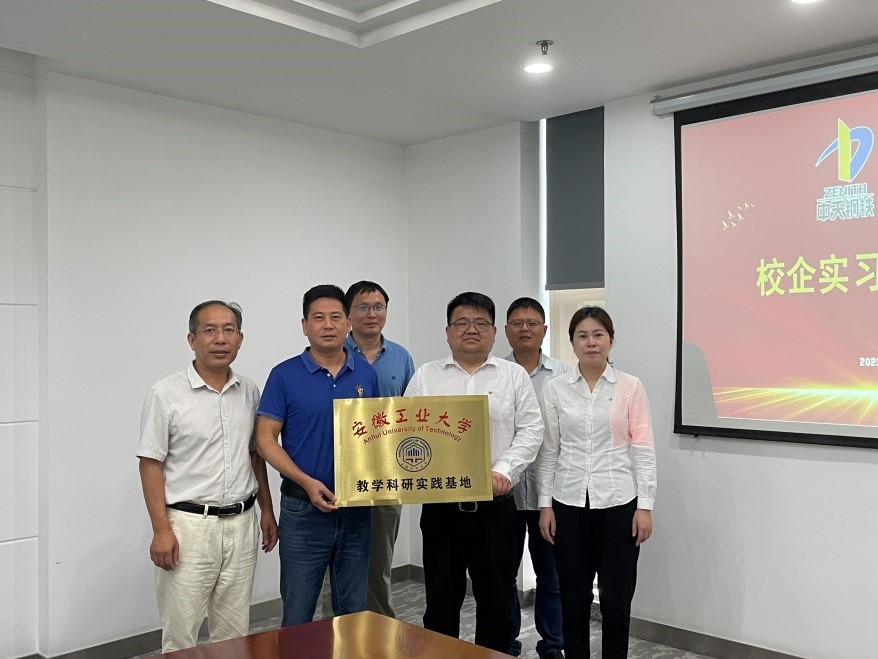 签约仪式上,汪永明副院长、范筱文副部长分别代表安徽工业大学和中天钢铁集团有限公司签署共建“教学科研实践基地”合作协议,吴文兵书记与吴敏刚部长一起为基地进行了授牌。(撰稿:魏志刚,杨树宝 审核:吴文兵,汪永明)