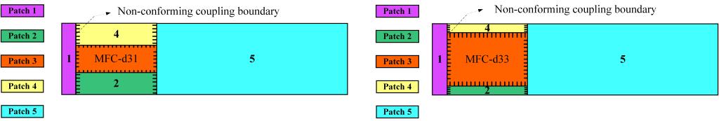 分布式压电智能结构广泛应用于航空航天飞行器壁板的形状控制、减振降噪和健康监测,复杂的服役环境以及材料的多物理场耦合特性给结构的计算带来了严峻的挑战。传统单片等几何分析(IGA)方法控制点的非插值性使其无法精确分析分布式压电智能结构。本研究提出了一种基于Nitsche方法的多片等几何分析方法,将结构划分为多个子域,并采用Nitsche方法耦合相邻子域、确保耦合边界的位移连续性,在减少冗余控制点产生的同时提高了构建、分析复杂几何模型的能力,最终实现了多种复杂分布式压电智能结构的高精度分析。相关研究成果发表在《Thin-Walled Structures》,NT动漫