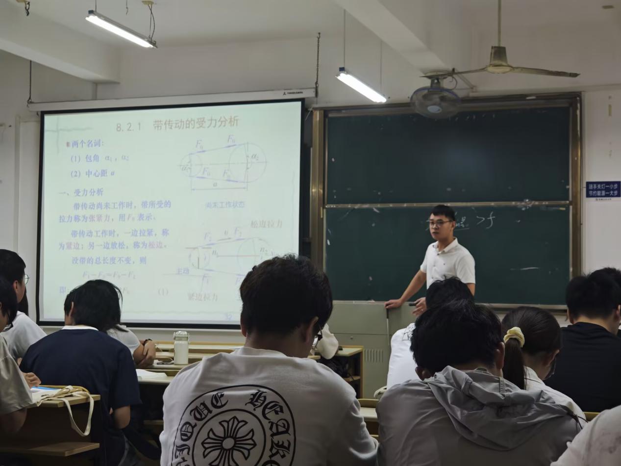 课堂上,王兆长老师结合“中国制造2025”中关于基础零部件可靠性提升的要求,引导学生既要夯实机械设计基础,又要培养创新思维,深刻认识到基础传动部件性能对整机质量的决定性影响。他提到,习近平总书记强调“制造业是立国之本、强国之基”,要求把科技自立自强作为国家发展的战略支撑,这为我们指明了方向。王老师鼓励同学们以工匠精神深耕细作,刻苦钻研专业理论,立志攻克带传动领域“卡脖子”技术难题,为建设制造强国贡献青春力量。