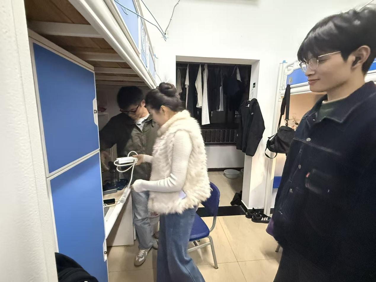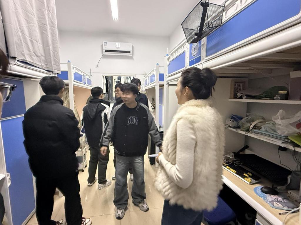由辅导员王丹丹、班级生活委员及志愿者组成的检查小组深入研究生宿舍开展排查。重点对违规使用吹风机、电煮锅等大功率电器,私拉乱接电线,插排过载,易燃物随意堆放等常见隐患进行细致检查。对发现的问题,检查小组现场明确整改要求与时限,同时耐心向学生讲解隐患危害,指导规范整改。