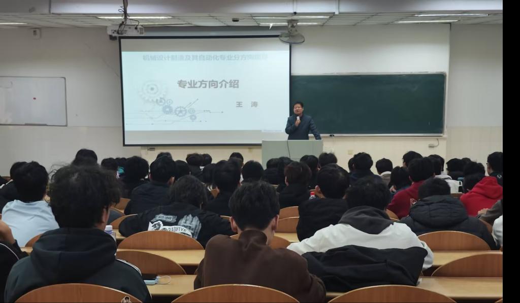 动员会围绕专业方向的划分与特点展开。会上,王刚老师首先对液压传动方向进行了深入解读,涵盖液压传动的基本原理、广泛应用、发展趋势以及学习该方向的多重优势,为学生提供了扎实的学科前景分析。接着,左立生老师对机械制造方向进行了重点说明,该方向侧重于先进制造工艺、数控技术、智能制造系统与现代工厂规划等内容,是支撑制造业转型升级的重要基础,培养学生具备扎实的工艺设计、设备管理与系统集成能力。最后,王涛老师系统介绍了机械电子工程方向,强调该方向融合机械、电子与控制技术,是智能制造与装备创新的核心领域。谈及就业前景,王老师充满信心地说,机械电子工程专业毕业生是当下市场的 “香饽饽”,可在机器人研发企业、电子科技公司、自动化设备厂商等单位,从事机器人设计、智能控制系统开发、机电设备调试等工作,不仅就业选择多样,而且薪资水平较高,发展潜力巨大。