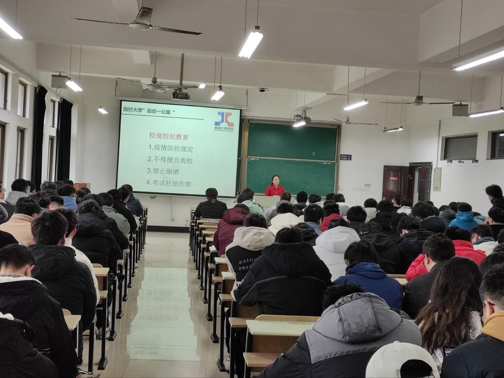 在机械楼分场次召开了毕业生大会,开展“毕业远航教育”,大会分别由学院毕业班辅导员张敏和章军主持。