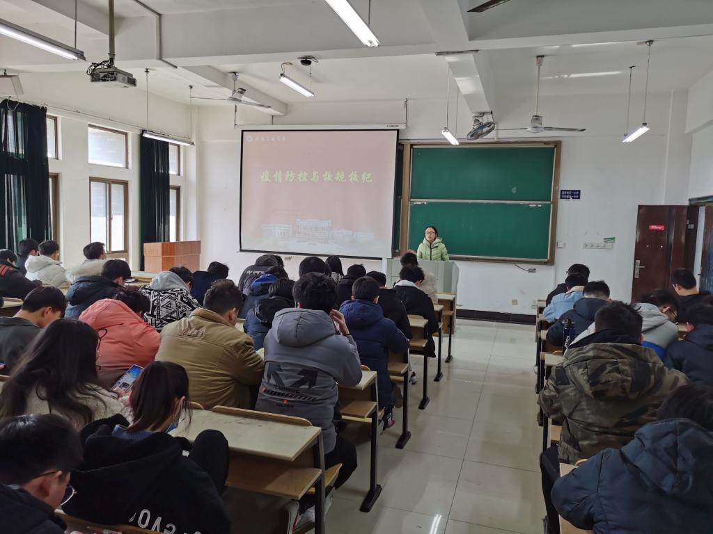 在机械楼405和407召开毕业生校规校纪与疫情防控教育大会,会议分别由毕业班辅导员张敏和章军主持,全体毕业生参加了会议。