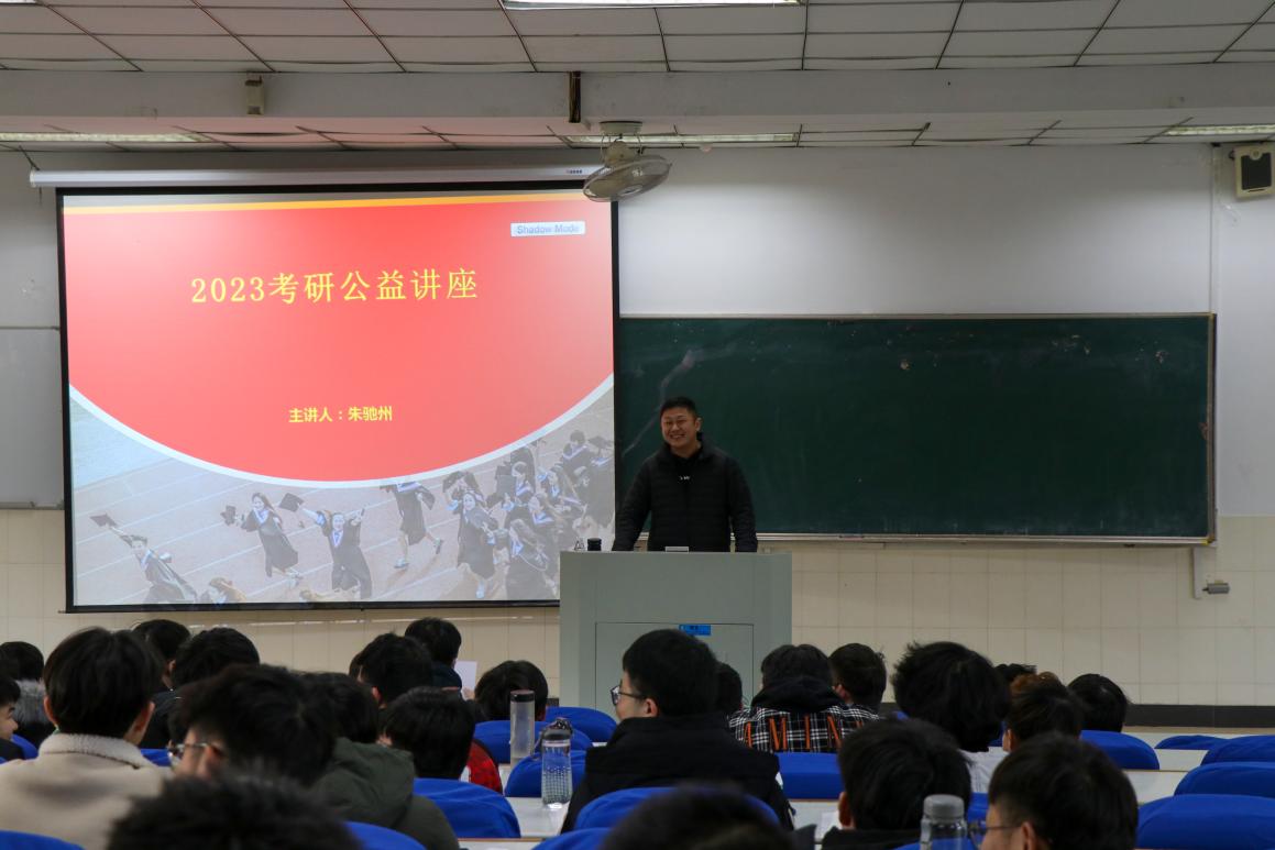 优秀校友、中研教育总经理朱驰州主讲,他本科毕业后一直从事研究生考试研究,有丰富的备考经验。讲座围绕同学们提出的七个相关问题展开:考研该如何规划,复习的大致顺序与计划;如何兼顾好大学的课程和考研;往年专业课等真题如何获取;专业课的复习规划应当如何开展,如何确定自己的专业课,如何高效科学的复习目标院校的专业课;考研目标院校具体信息如何了解,录取比,历年分数线,是否压分,歧视双非等信息;考研调剂相关问题;考研用书的推荐,网课的推荐等。朱总用诙谐幽默的语言为同学们呈现了一场满满“干货”的指导,同学们细心聆听、认真记录,结束后大家都表示了解了许多实用的备考方法、对考研的形势有了全面的认识,为选择考研学校有了更准确的认识。同学们会充分利用寒假的40多天时间,了解考研院校、确定考研志愿,为大三下学期全面投入考研做准备。(撰稿:王琴 审核:李克明)