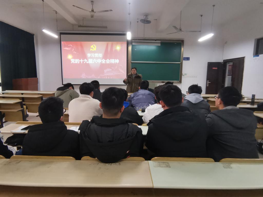 首先王老师带领大家学习了党的十九届六中全会精神,她要求同学们要加强政治理论学习,作为青年一代要关心国家大事,自觉增强“四个意识”、坚定”四个自信”,坚决做到“两个维护”。接着,王老师强调临近放假,各班级要召开假前主题班会,围绕人身安全、财产安全、网络安全、交通安全等,不要前往中高风险区和人员聚集地,过一个安全祥和的春节。最后,她要求各班在假期里管理班级要做到“形散神不散”,以四六级英语备考为抓手,成立学习打卡小组,假期里保持良好的生活习惯和学习习惯,帮助父母做些家务,不断充实自己。