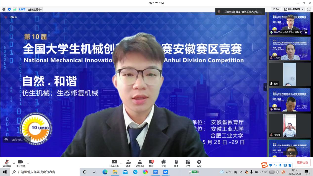 受疫情影响,本次省赛参赛选手采取线上答辩与演示、专家采取线上评审的方式进行。竞赛历时2天,来自全省23所本科高校184支代表队,900余名师生参加了“仿生机械”和“生态修复机械”2个类别的比赛。本次比赛共评选出安徽省赛区一等奖28项,二等奖37项,三等奖46项。NT动漫