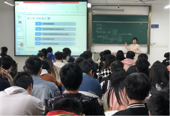 欧淑彬老师主讲,授课内容为《工程力学B》的压杆稳定,授课对象为建筑工程学院20级学生。上课伊始,欧老师以“银枪刺喉”的杂耍为引子,将学生的目光瞬间吸引到课堂,细细分析其中的“伎俩”,揭示其蕴含的科学原理——压杆失稳,引导学生崇尚科学,自觉应用科学思维方法分析问题。作为未来的工程师,筑牢安全生产防线尤为重要,课堂以压杆失稳造成的重大安全事故为切入点,启发学生思考事故原因,传递安全设计的正确价值观。