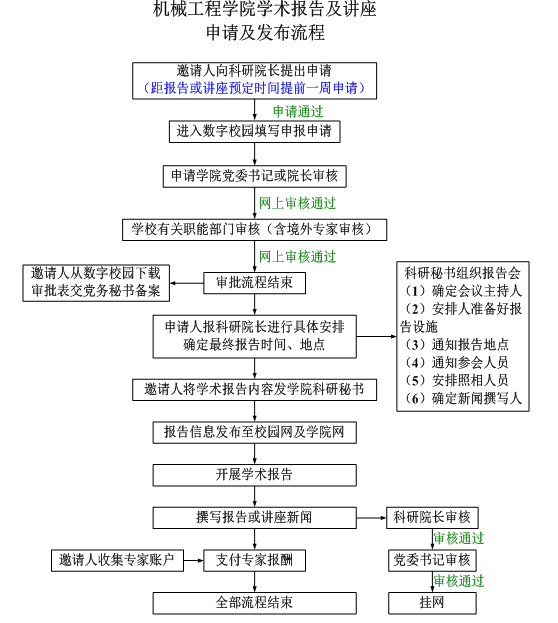 (或线上)开展学术报告及讲座。为规范学术报告及讲座的管理,特制定本流程。经学院研究同意,现予以印发,请遵照执行。