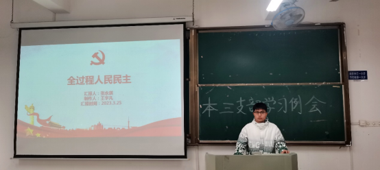 随后,张永琪、王宇凡从“全过程人民民主是什么”“全过程人民民主为什么好”“如何发展全过程人民民主”等三个方面,层层递进,抽丝剥茧地为大家全面系统地讲解,使大家深刻理解全过程人民民主的含义、重要意义以及发展全过程人民民主形成的民主政治格局。